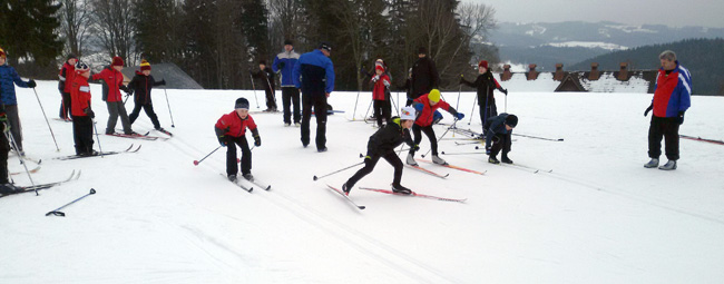 V zimním středisku Paseky nad Jizerou na nás čekaly výborné sněhové podmínky, které jsme plně využili. Správce nám nechal udělat přímo za penzionem kilometrové běžecké kolečko. Po prvním dopoledni nebylo znát, že skoro všichni kluci stojí na běžkách poprvé.