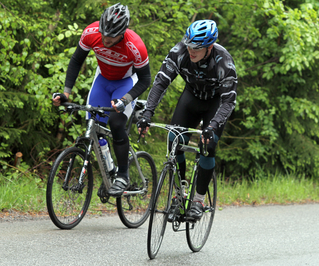 TĚSNĚ POD VRCHOLEM. Gólman David Honzík (vlevo)a útočník Patrik Přidal dojíždí do cíle druhého výjezdu. Foto: Zdeněk Drla