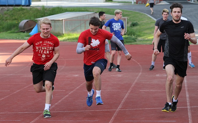 SPRINTY. Zleva Dominik Hohl, Václav Půža a David Hubert při tréninku na atletickém stadionu. Foto: Zdeněk Drla