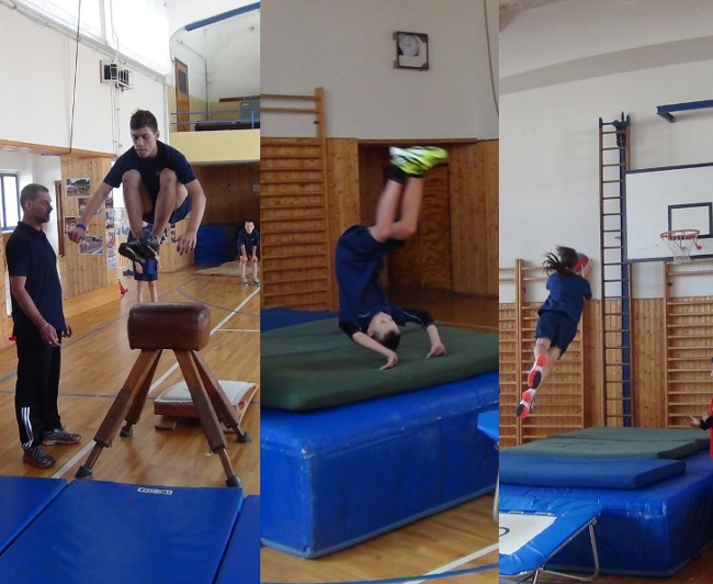 Suchá příprava mladé sportovce bavila, ať už se jednalo o přeskoky, trampolínu nebo o "létající" basketbal. Foto: Tomáš Lysý.