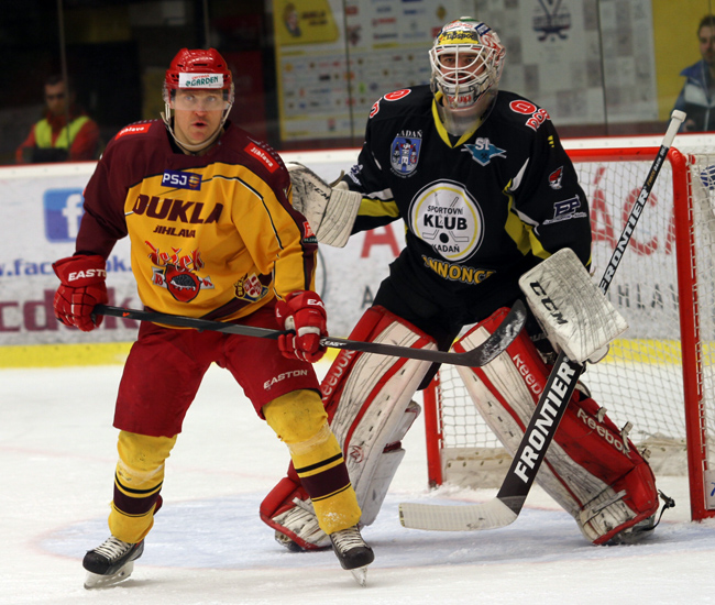 NAJÍT RECEPT NA KADAŇ. V minulé sezoně vstřelila Dukla na kadaňském zimáku vždy tři góly a inkasovala vždy dvakrát. První duel se rozhodoval v nájezdech (rozhodující Radan Lenc), ve druhém získali svěřenci trenéra Petra Vlka tři body za výhru v základní hrací době. Foto: Zdeněk Drla