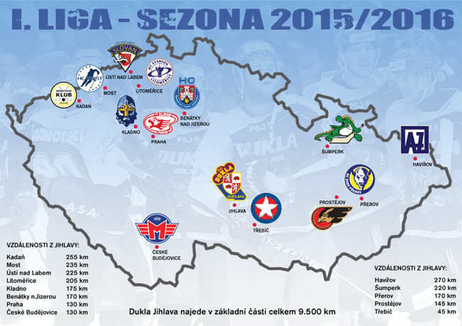 DRUHÝ NEJDELŠÍ VÝJEZD. Do Kadaně je to z Jihlavy 255 kilometrů. Dukla tak vyráží ve středu na svoji druhou nejdelší štaci sezony, dál je to jen do Havířova. Mapa: Zdeněk Drla