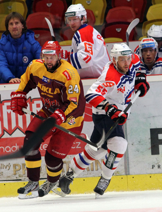 DO TŘEBÍČE! Dukla jede na horký led Horácké Slavie Třebíč. Potvrdí čerstvý třicátník Filip Seman svoji formu z posledních zápasů? Ve 22 kolech WSM Ligy už posbíral 20 kanadských bodů za deset gólů a stejný počet asistencí. Foto: Josef Plechatý
