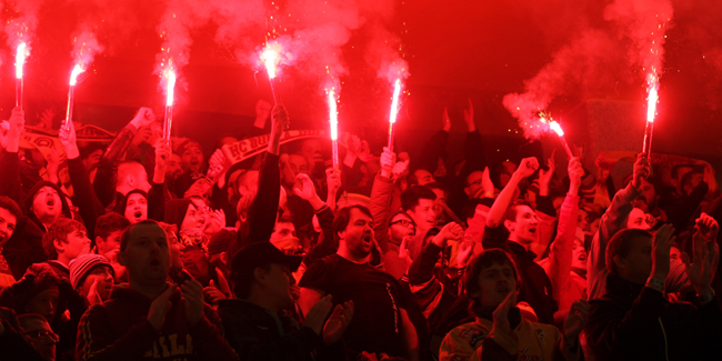 Při závěrečné siréně odpálili domácí fanoušci několik červených světlic. Pozadu v tomto ohledu nezůstali ani příznivci Motoru, kteří ve svých řadách zapálili stroboskop. Je sice pravda, že oba tyto materiály již nějaký ten dým přinesly, ovšem zápas již byl ukončen, mohlo to tedy vadit pouze pramálo.