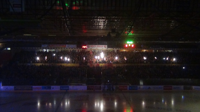 Při nástupu jihlavských hráčů na led si fanoušci Dukly připravili první choreo. Horácký zimní stadion potemněl a přes kotel začaly svítit interiérové fontány, to vše za doprovodu jihlavské trubky. Ihned po rozsvícení se snesly na led i konfety a když při uklízení ledové plochy spustil kotel známou melodii Ta Jihlavská, naše Dukla nebo odpovídačku Dukla – Jihlava, naskakovala pomalu husí kůže.