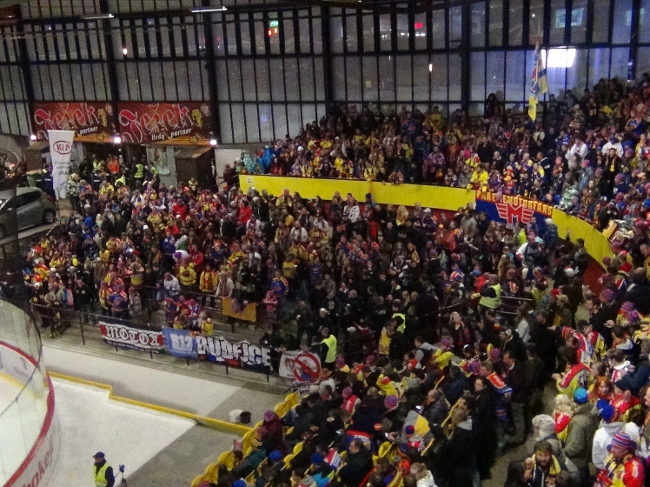 Také početná ekipa příznivců Českých Budějovic přispěla k parádní kulise. Tentokrát sice hostující fanoušci nepřicestovali v tak hojném počtu, jako v posledním vzájemném zápase minulé sezony, přesto opět naplnili kompletně rohový sektor. Škoda jen, že do svých řad pustí několik „rádobyfanoušků“ odděných v černém, které více jak hokej či fandění samotné zajímá vyvolávání šarvátek a konfliktů.