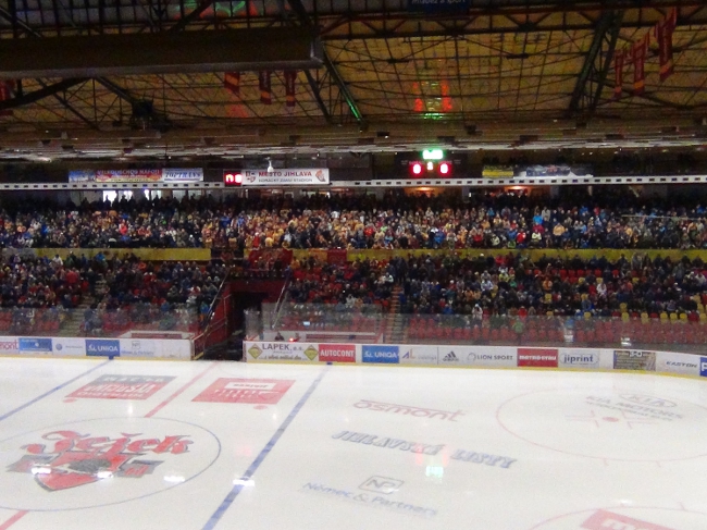 Již zhruba jedenáct minut před úvodním buly byly ochozy jihlavského stadionu slušně zaplněny. Návštěva se nakonec vyšplhala na 4975 diváků, což je pro Horácký zimní stadion rekord letošní sezony. Foto: Tomáš Lysý