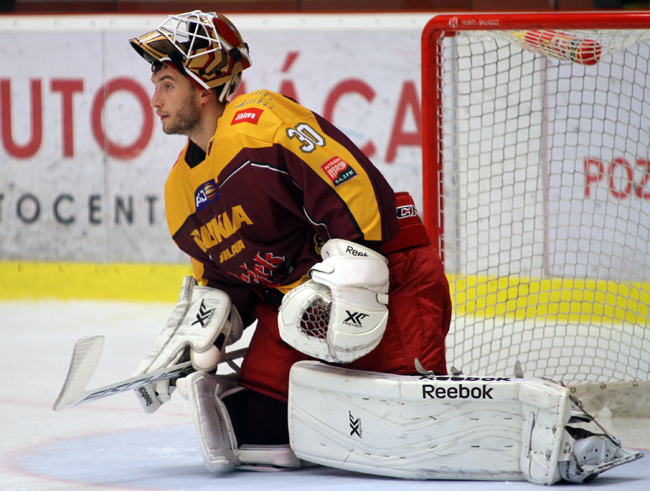 NA KLADNO! Jihlavský gólman David Honzík kraluje statistikám celé soutěže. Má nejmenší průměr obdržených gólů na zápas a vede i v procentuální úspěšnosti zákroků. Foto: Josef Plechatý