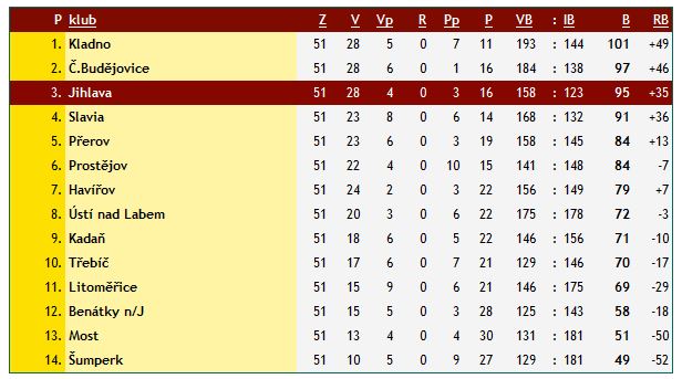 Jihlava ještě bojuje o druhé místo v tabulce, situaci ale nemá ve svých rukách