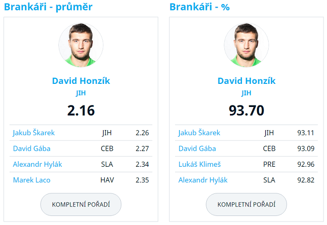 „Je to příjemné. Často se nestává, aby skončili dva gólmani z jednoho klubu na prvním a druhém místě v celkových statistikách soutěže. Jsem za to rád. Navíc se nám podařila zajímavá věc - ani jednou jsme gólmany nemuseli v zápase střídat."