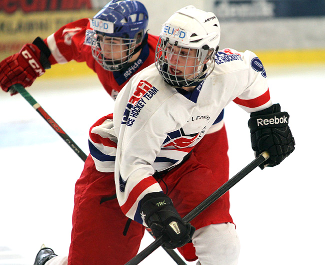 "PATNÁCTKY" SE ŠVÉDY. Už počtvrté v řadě se na Horáckém zimním stadionu představí výběry českých talentovaných hokejistů do 15 let (červený, bílý a modrý tým), aby změřily síly mezi sebou a se zahraničním soupeřem. Prvním rokem se na HZS představil výběr Petrohradské oblasti (Rusko), od druhého ročníku přijíždí do Jihlavy pravidelně tým Smålands Ishockeyförbund ze Švédska. Foto: Zdeněk Drla