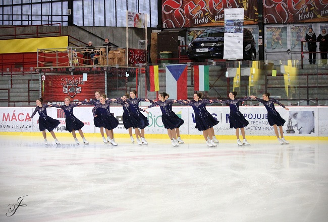 KATEGORIE BASIC NOVICE, žačky: 1. Saxony Ice Pearls (GER) 35,12 bodů 2. Ice Flowers (Dukla Jihlava – CZE) 33,02 b. 3. Big Bang (VSK Technika Brno – CZE) 32,71 b.„Na vítěze z německého slavného klubu v Chemnitzu jsme sice ztratili několik bodů, ale se svým tradičním soupeřem z Brna holky tentokrát zvítězily. Jízdu předvedly s velkou přesností,“ neskrývala potěšení trenérka Vladimíra Pokorná.