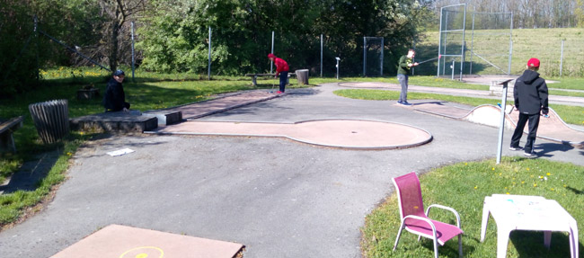 Děti i rodiče využil krásného počasí a relaxovali v přilehlém minigolfovém areálu