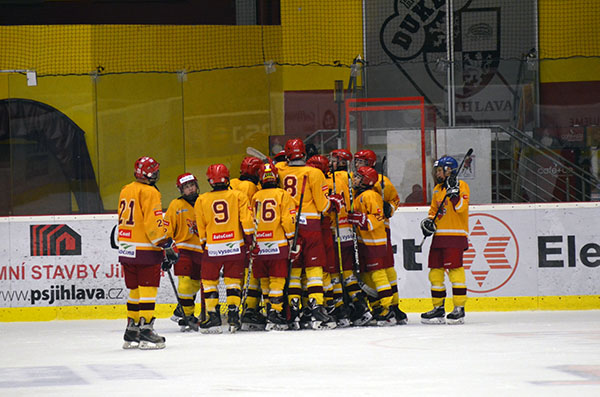 Takto se hráči B-týmu jihlavského mladšího dorostu radovali z výhry proti Jindřichově Hradci v základní části ligy. Jindřichohradeckého soupeře nakonec Jihlava přeskočila jak v konečné tabulce základní části, tak v tabulce o udržení. Foto: Tomáš Buksa