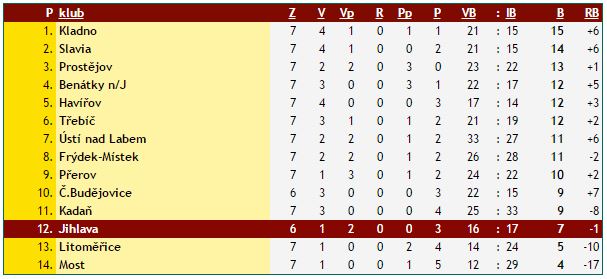 Pohled do tabulky hovoří jasně, do prvního soutěžního derby nové sezony půjde v lepší pozici Horácká Slavia. Zatímco Dukla je na dvanáctém místě se ziskem sedmi bodů, v poměrně vyrovnané tabulce má Třebíč o pět bodů více a patří jí šestá pozice. Ta hraje od začátku sezony jako na houpačce, stačí se podívat na její výsledky. Doma si poradila s Přerovem, poté prohrála v Prostějově v prodloužení. Následovala cenná domácí výhra nad Motorem, tu však vystřídaly dvě porážky – v Benátkách nad Jizerou a doma ve vypjatém souboji s Havířovem. Fanoušky si ale třebíčští hokejisté udobřili dvěma posledními zápasy. Proti Kladnu a Slavii získala Horácká Slavia pět bodů. Z ledu Rytířů si odvezla výhru na nájezdy, doma pak byla dokonce stoprocentní a Sešívané porazila 5:2.