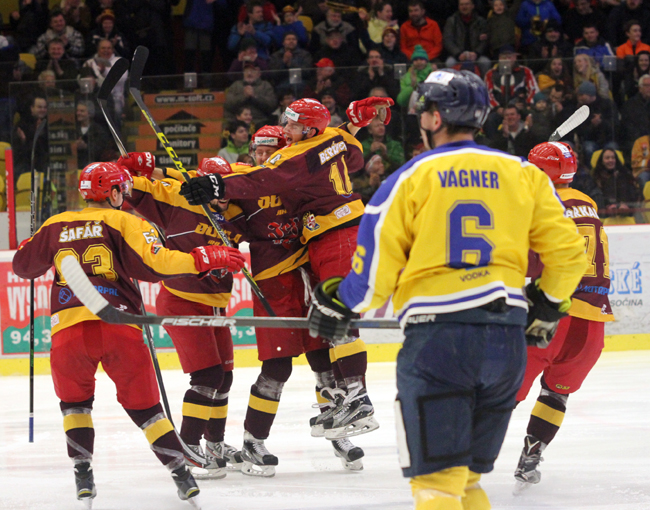 Dukla a Ústí nad Labem jsou „staří známí“ z loňské sezony. Tehdy proti sobě nastoupily oba týmy hned devětkrát. Čtyřikrát během základní části – doma vyhrála Dukla dvakrát 4:1, ze stadionu soupeře si přivezla šest bodů po dvou výhrách 4:3. Pětkrát pak v semifinále. Ústí nad Labem totiž o kolo dříve poslalo ze hry ven Kladno, vítěze základní části. V sérii, jejíž vítěz šel do baráže, se bylo na co dívat! V euforii hrající Ústí, těžící ze superformy lajny Tůma, Kloz, Roubík, bylo pro Duklu těžkým soupeřem. Během prvního semifinále Dukla třikrát smazala vedení soupeře a vyhrála na nájezdy. Za dalších čtyřiadvacet hodin rozhodla Jihlava v prodloužení. Po dvou infarktových zápasech přišel první zápas na ledě Ústí, které zvítězilo 4:1. Jenže hned poté si Dukla zvenčí přivezla mečbol. Skvělý Jakub Škarek pochytal v jihlavské brance všech 37 střel soupeře a výhru 3:0 potvrdila Jihlava hned dalším utkáním. Proti již unavenému soupeři, který během měsíce sehrál 14 vyřazovacích bojů, vedle v polovině zápasu 6:0. Nakonec vyhrála 7:2 a po dvanácti letech postoupila do baráže.