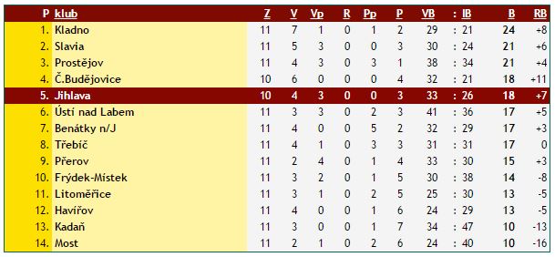 Pěti výhrami v řadě se Jihlava dostala na páté místo tabulky s osmnácti body. Její soupeř z Ústí nad Labem také patří do horní poloviny tabulky, se sedmnácti body je pouze o příčku níže. Vstup do sezony rozhodně neměli hokejisté z centra Ústeckého kraje špatný. Na nájezdy vyhráli v Mostu a doma rozstříleli Kadaň 9:3. Jenže poté přišly divoké porážky ve Frýdku-Místku (6:7), Litoměřicích (4:5) a dílčí trápení nezastavila ani domácí prohra na nájezdy s Přerovem. Třídílnou sérii neúspěchů vystřídaly čtyři po sobě jdoucí výhry – v Prostějově, doma nad Motorem, v Benátkách a opět na domácím stadionu proti Havířovu. Poslední dva zápasy Ústečtí opět prohráli, nutno však říct, že s týmy postavenými v tabulce nad sebou – na ledě Kladna prohráli 0:3, doma padli v prodloužení se Slavií 1:2.