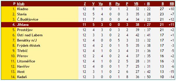 Pozn.: Zápas České Budějovice – Jihlava bude dohrán v pondělí 19.12.2016