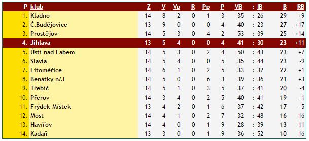 Na této pozici přeskočila Slavii Praha. Právě Sešívaní byli posledním soupeřem Českých Budějovic. Na led Motoru sice nepřijeli pouze s juniory v sestavě, jako do Prostějova, kde prohráli 0:13, ale už bez osmi hráčů základního kádru. Pražané si je nemohou dovolit z důvodu oznámené neblahé ekonomické situace. Na soupisce Slavie se tentokrát objevilo 11 hráčů z A-týmu, čtyři nováčci, čtyři junioři a veterán Pavel Kolařík, toto složení však na rozjeté Jihočechy nemohlo stačit. Motor přestřílel soupeře poměrem 42:24, vyhrál 3:0 a gólman David Gába zapsal první nulu v letošním ročníku.
