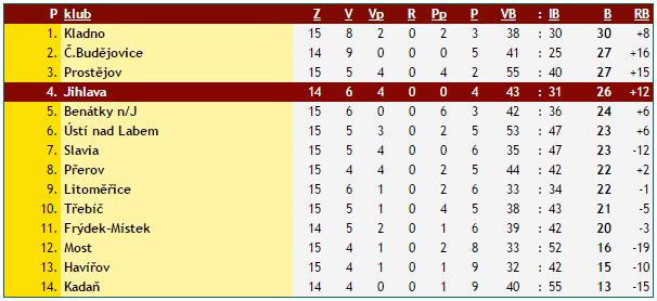 Pozn.: Zápas České Budějovice – Jihlava bude dohrán v pondělí 19.12.2016