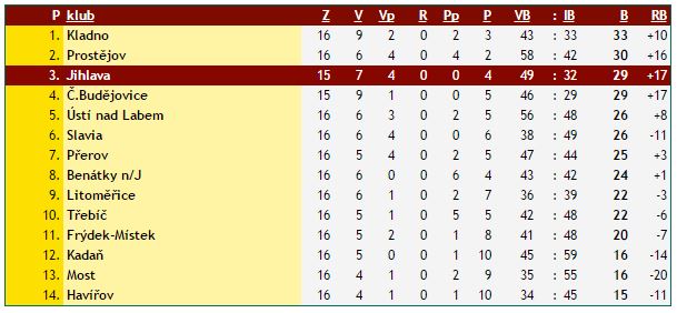 Pozn.: Zápas České Budějovice – Jihlava bude dohrán v pondělí 19.12.2016