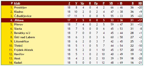 Pozn.: Zápas České Budějovice – Jihlava bude dohrán v pondělí 19.12.2016