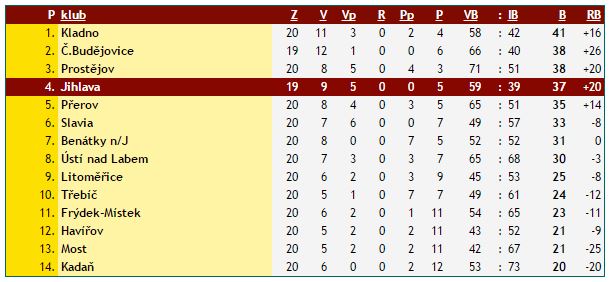 Stejně tak se Třebíčským nedaří ani v posledních utkáních a zatím nenavazují na povedený vstup do sezony, při kterém v sedmi úvodních zápasech uhráli rovných dvanáct bodů. Stejný bodový součet totiž nasbírali ve zbylých třinácti utkáních, kdy zvítězili pouze dvakrát – za tři body v Kadani a v Přerově. Doma to Horácké Slavii nejde, o čemž svědčí šest po sobě jdoucích porážek v Mann-Hummel Areně. Obecně při derby ale platí, že jdou veškeré statistiky stranou, navíc na Jihlavu se Třebíč dokáže před fanatickým domácím publikem vždy vyhecovat. A ačkoliv má Třebíč v současné době neúspěšnou sérii šesti proher za sebou, získala v nich čtyři body. Doma prohrála na nájezdy s Prostějovem, jako jediná dokázala sebrat bod doma suverénnímu Motoru, prohrála doma v prodlužení s Kladnem a poté již následovala zmiňovaná porážka v prodloužení na Slavii (v posledních dvou utkáních vždy vedla).