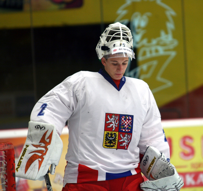 Současný gólman Dukly Jihlava Miroslav Svoboda v dresu národního týmu do 17 let na kempu v Jihlavě v listopadu 2011. Foto: Josef Plechatý