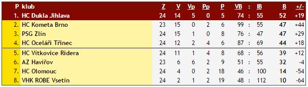 Junioři HC Dukla Jihlava – 5. místo, pozice mezi postupovou osmičkou