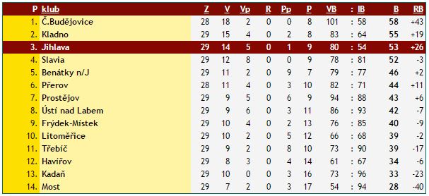 Tři body z ledu Motoru potvrzeny. Přesně tento úkol si mohla Dukla odškrtnout v domácím utkání 29. kola proti Benátkám nad Jizerou. Tři góly při vítězství 3:1 si rozdělila do všech tří částí pro oko diváka hodně pohledného zápasu. Nejprve otevřel skóre v přesilovce Filip Dundáček, aby hosté na malou chvíli připomněli svůj post nejlepšího týmu na soupeřových kluzištích a těsně před polovinou zápasu vyrovnali. Na to bleskově odpověděl Filip Seman. Třetí třetina, hraná nahoru – dolu a ve vysokém tempu, přinesla několik šancí. Více jich bylo na hokejkách Jihlavy, ale pojišťující třetí gól přidali domácí až minutu a půl před koncem z hole Michala Důrase. Vzhledem k tomu, že první tři týmy tabulky – Motor, Kladno i Slavia – své zápasy prohrály, dokázala Dukla výhrou snížit ztrátu a ještě se posunout s 53 body na třetí místo WSM Ligy.