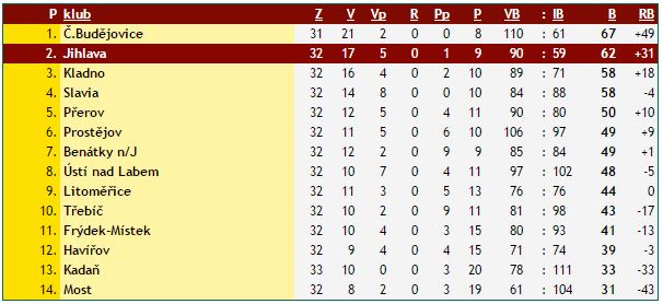 Když Jiří Říha po minulém utkání říkal, že se po předešlých odehraných utkáních má Dukla sebevědomí a nachází se na vítězné vlně, rozhodně nemluvil do větru. Jihlava totiž vyhrála všech šest posledních utkání. Během nich se utkala se všemi třemi týmy, se kterými bojuje v první čtyřce tabulky. Vyhrála na ledě Motoru, v přímém souboji o druhé místo zvítězila na Mikuláše proti Kladnu a další vítěznou bitvu o druhé místo tabulky WSM Ligy zaznamenala v minulém zápasu. Na Slavii vedla Dukla v šesté minutě po trefách Patrika Danišovského a Jiřího Říhy, ovšem Pražané v osmnácté minutě dvěma slepenými brankami srovnali. Na konci druhé třetiny využili Jihlavští druhou přesilovku a ta nakonec byla rozhodující. O vítězný gól se postaral znovu Jiří Říha a skóroval již podesáté v sezoně. Červenožlutí si ve třetím dějství tři body zkušeně pohlídali, navíc svůj náskok navýšili po přesných zářezech z hole Davida Kajínka a Richarda Diviše. Po výhře 5:2 má Jihlava celkem 62 bodů a před Kladnem a Slavií udržuje čtyřbodový náskok. Naopak na první Motor má manko pěti bodů.