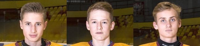 Trio reprezentantů do 16 let: zleva gólman Ondřej Chaloupek, útočník Adam Najman a obránce Patrik Rašín. Koláž: Tomáš Lysý
