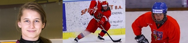 Tři hokejistky z Jihlavy v ženském A-týmu – Kristýna Kaltounková, Eva Adamová a Zuzana Martinů (zleva). Koláž: Tomáš Lysý