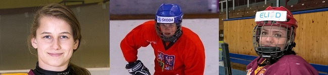 Tři jihlavské hokejistky, usilující o nominaci na domácí mistrovství světa žen do osmnácti let – Kristýna Kaltounková, Zuzana Martinů a Nikola Dýcková (zleva). Koláž: Tomáš Lysý