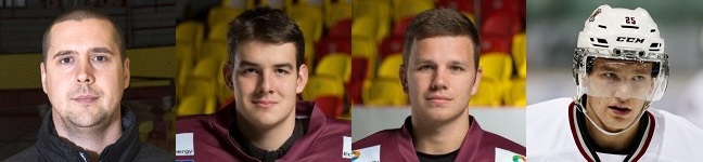 DVACÍTKA S JIHLAVÁKY. Asistent trenéra reprezentační dvacítky Petr Svoboda, gólman Jakub Škarek a útočníci Lukáš Anděl a Adam Musil. Koláž: Tomáš Lysý