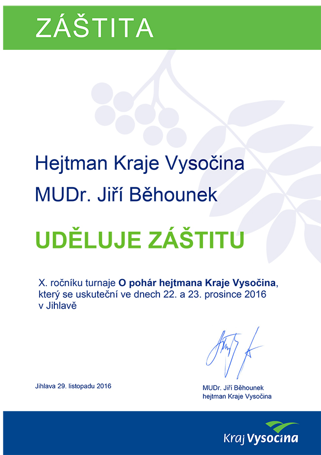 Rozlosování 10. ročníku turnaje O pohár hejtmana Kraje Vysočina