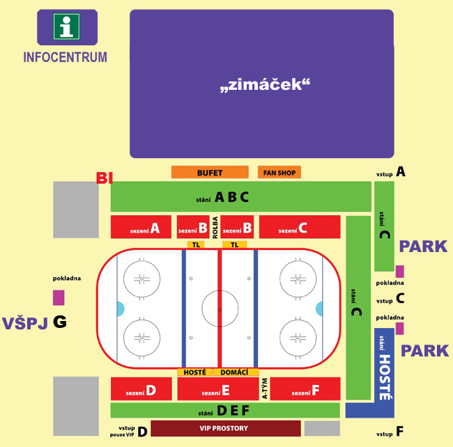 Z důvodu předejití případným konfliktům u plechového ochozu (vzájemné krádeže šál) pod kotlem hostů, bude tento koridor mobilními zábranami uzavřen. Žádáme proto jihlavské fanoušky, aby pro vstup do sektorů nad střídačkami využili ostatních přístupů a při východu ze stadionu použili zmiňovaný východ DEF (viz. výše).