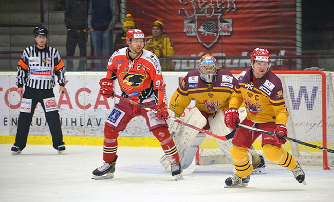 PROSTĚJOV, BENÁTKY NEBO FRÝDEK? Žádného jiného soupeře Dukla do čtvrtfinále dostat nemůže. Proti tomuto triu se jí v základní části hodně dařilo. Jihlavští hokejisté vybojovali proti Prostějovu celkem 10 bodů z 12 možných, nad Benátkami a Frýdkem-Místkem brali vždy 9 bodů z dvanácti. Foto: Tomáš Buksa