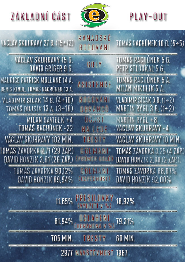 Letos je situace v táboře Energie jiná. Zatímco loni získal tým vyznávající zeleno-černou barevnou v základní části a šestikolovém play-out dohromady jen 48 bodů, nyní byl karlovarský bodový součet mnohem větší a zastavil se na čísle 64. Tato cifra sama o sobě na vyhnutí se nepředvídatelné baráži nestačila, ale pro mladý tým je to určitě povzbuzení. Tím spíše, že Karlovým Varům se druhá část základní části povedla výrazně lépe než první. Svěřenci trenéra Jana Tlačila sice získali v rozmezí 27. – 52. kola jen 27 bodů, ale pouze ve dvou případech prohráli o tři a více gólů a hned čtrnáct klání skončilo rozdílem jedné branky.
