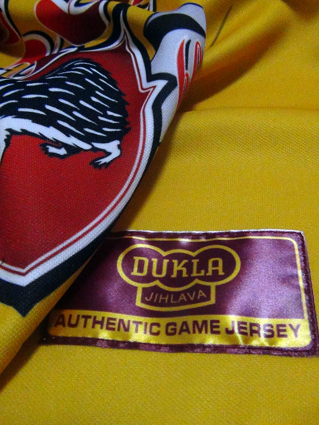 V aukci je možné vydražit originální hráčské dresy Dukly Jihlava z ročníku 2016/2017, ve kterých jihlavští hokejisté nastupovali do zápasů základní části WSM Ligy, následného play-off druhé nejvyšší české hokejové soutěže a ve kterých odehráli postupovou baráž. Jedná se o herní variantu, kterou není možné jinde získat – všechny dresy jsou opatřeny nášivkou „Authentic Game Jersey s logem klubu“ (fanouškovské dresy tuto nášivku nemají). Aukce, která potrvá do 23. června 2017, nabízí až na jednu výjimku (kapitán Jiří Dobrovolný a Jevgenij Kondratěv) žlutou variantu cenných postupových artefaktů.