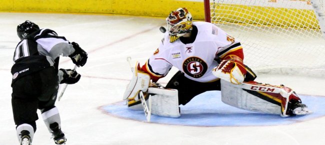 První sezona ve Stocktonu Heat v AHL se Davidu Rittichovi vydařila. Odchovanec jihlavské gólmanské školy patřil mezi nejlepší gólmany celé farmářské soutěže NHL. Foto: Twitter Stockton Heat