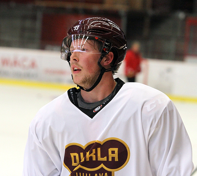 POSILY ZE SEVERU EVROPY. První trénink s Duklou Jihlava mají za sebou i gólman Lars Volden a obránci Erik de la Rose a Nicolai Bryhnisveen (dole). Foto: Zdeněk Drla