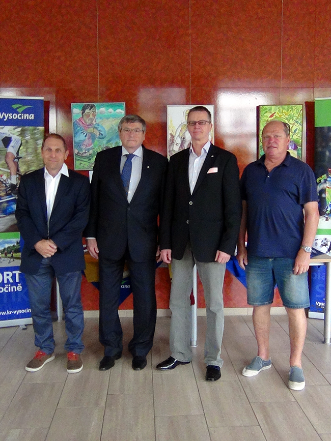 Bedřich Ščerban, Jiří Běhounek, Hannu Tyry a Antonín Micka krátce po slavnostním přijetí finské výpravy v sídle Kraje Vysočina. Foto: Tomáš Lysý