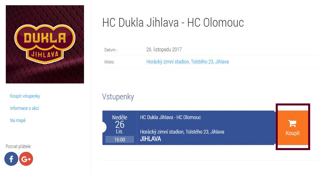 Pořízení vstupenky je jednoduché a zabere pouze pár minut, resp. několik kliknutí. Po registraci/přihlášení do sítě Ticketportal si zájemce může zakoupit vstupenku na vybraný domácí zápasu Dukly Jihlava, a to během pár okamžiků.