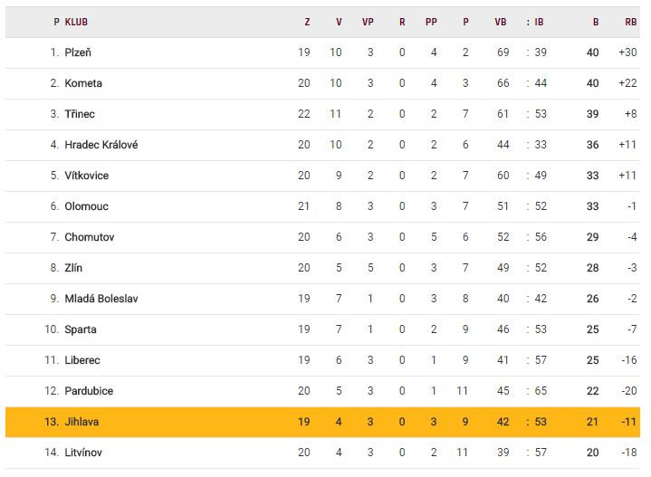 Toto utkání nabídne při pohledu do statistik poměrně velký kontrast. Dukla platí za nejméně trestaný tým extraligy, pouhých 140 trestných minut je skok oproti 289 trestným minutám Ridery, která je druhým nejtrestanějším týmem extraligy, hůře už na tom jsou pouze Zlínští. Vítkovice mají ale ve svých řadách tvrďáka Jana Výtiska, ten si celkem suverénně jde pro třetí zelenou helmu v řadě pro vítěze Radegast Indexu. Ani jeho tým rozhodně nezůstává pozadu. V týmovém RI je na druhém místě s 607 body, ztrácí 57 bodů na první Plzeň. Jihlava se v tomto žebříčku nachází na posledním místě s polovičním počtem bodů, konkrétně 302 body.
