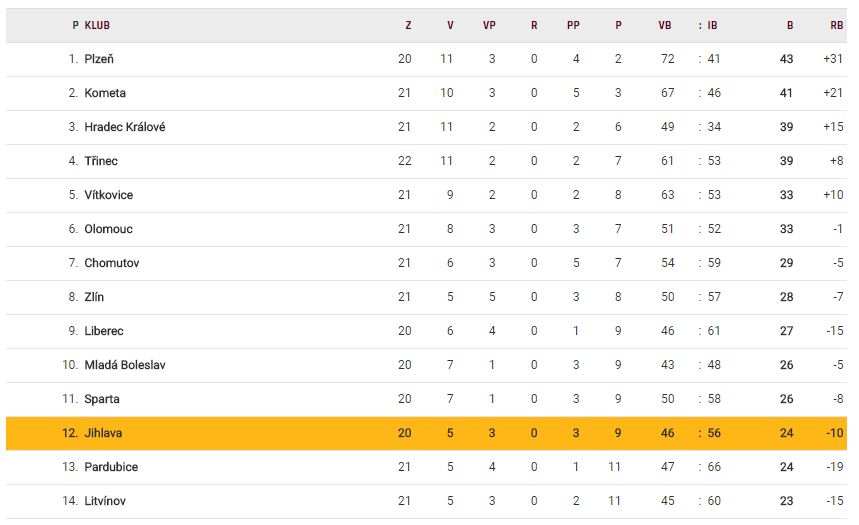 Tabulka TELH 2017/2018 k 16. listopadu 2017