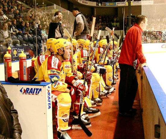 Střídačka Dukly Jihlava.