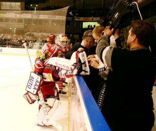 Broušení brusle gólmana Lašáka.