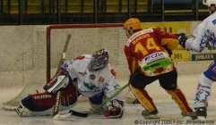 Sérii tří domácích zápasů zakončila Dukla Jihlava s celkem KLH Chomutov. Mužstvo ze severu Čech přijelo do Jihlavy pouze se třemi formacemi. Jihlava chtěla potvrdit, že doma se jí v posledních dvou zápasech dařilo. Utkání začalo v pomalejším tempu, obě mužstva se oťukávala a každý čekal na chybu soupeře. První vážnější akci zakončoval chomutovský Milan Kostourek, ale dobře naladěný Jaroslav Suchan jeho střelu za svá záda nepustil. O minutu později vyzkoušel pozornost brankáře hostů Tomáš Čachotský, když před brankou tečoval nahozený puk, jeho teč minula jen těsně pravou tyčku Horčičkovy branky. V 11. minutě trefil boční konstrukci branky jihlavský obránce Jan Šmarda. Ve 14. minutě pomohla Suchanovi pravá tyčka, kterou nastřelil prudkou střelou od modré Ondřej Poživil. Před přestávkou předvedl divákům skvělou stahovačku Petr Altrichter, ale jeho střela už tak dobrá nebyla.