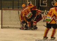 První čtvrtfinálový zápas odehrála Dukla Jihlava na svém ledě a soupeřem ji byl Hradec Králové. Úvod zápasu byl velmi nervózní hráčům se příliš nedařili přihrávky, a tak bylo k vidění velmi nepřesností. V šesté minutě se hosté dostali do přečíslení dva na jednoho, ale poslední jihlavský obránce Jiří Dobrovolný celou snahu hostů zhatil dobrým obraným zákrokem. V průběhu první třetiny měl jihlavský brankář určitě více práce než jeho protějšek. Větší aktivita se hráčům Hradce Králové vyplatila. Ve 12. minutě se Energetici ujali vedení gólem z přesilové hry. Miroslava Roubík nabyl za kruhy Zdeňku Toužimskému, 0:1, jenž propálil vše co mu stálo v cestě. Vzápětí dokázali jihlavští hokejisté vyrovnat. Po fantastickém zákroku Vladislava Koutského se dostal k odraženému kotouči Jonáš Fiedler, přistrčil jej svému kapitánovi Oldřichu Bakusovi, 1:1, a ten už neměl se skórováním do prázdné branky problém. Jihlavský rozlet hosté rázně uťali v poslední minutě první třetiny. Střelu Daniela Volrába od modré totiž Jaroslav Suchan neudržel a jednoduchá práce se naskytla Jiřímu Hendrichovi, 1:2, který zakončil akci do prázdné klece. Okamžitě po buly zazvonil na hradeckou klec Jonáš Fiedler, posléze spálil velkou šanci střelou do hrudi hradeckého gólmana Milan Baranyk.